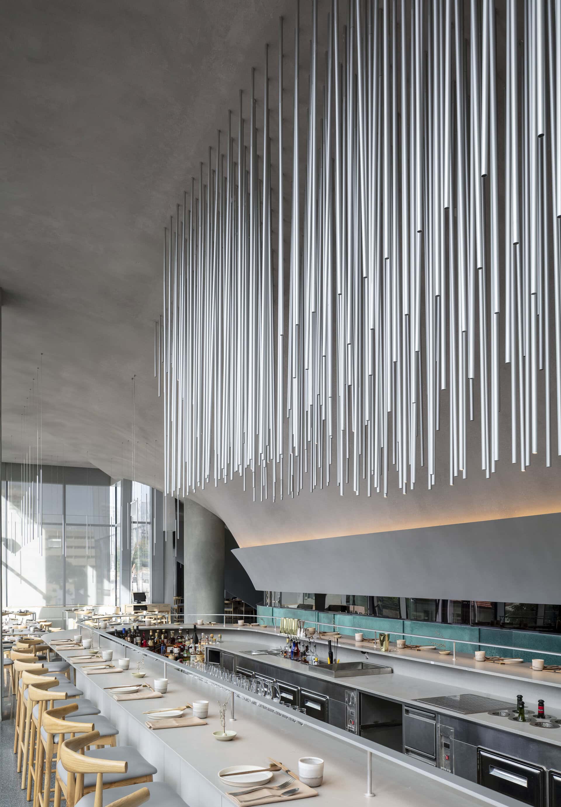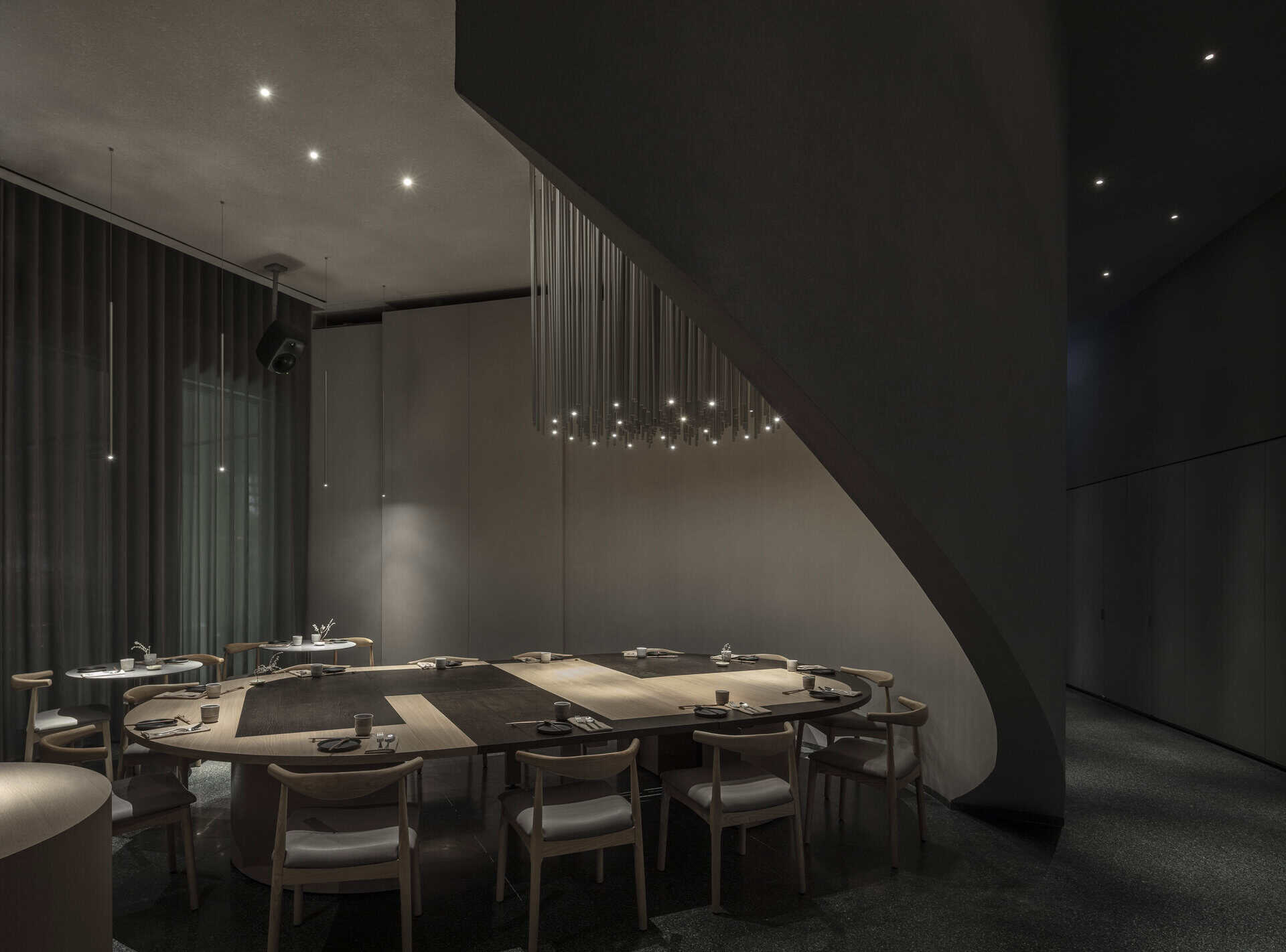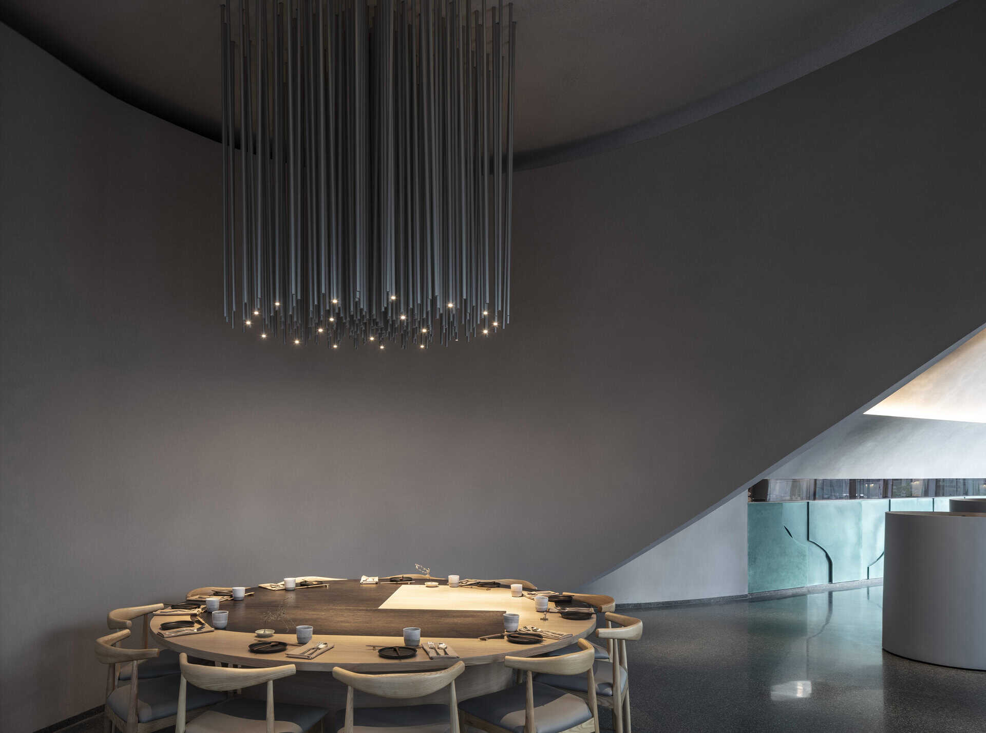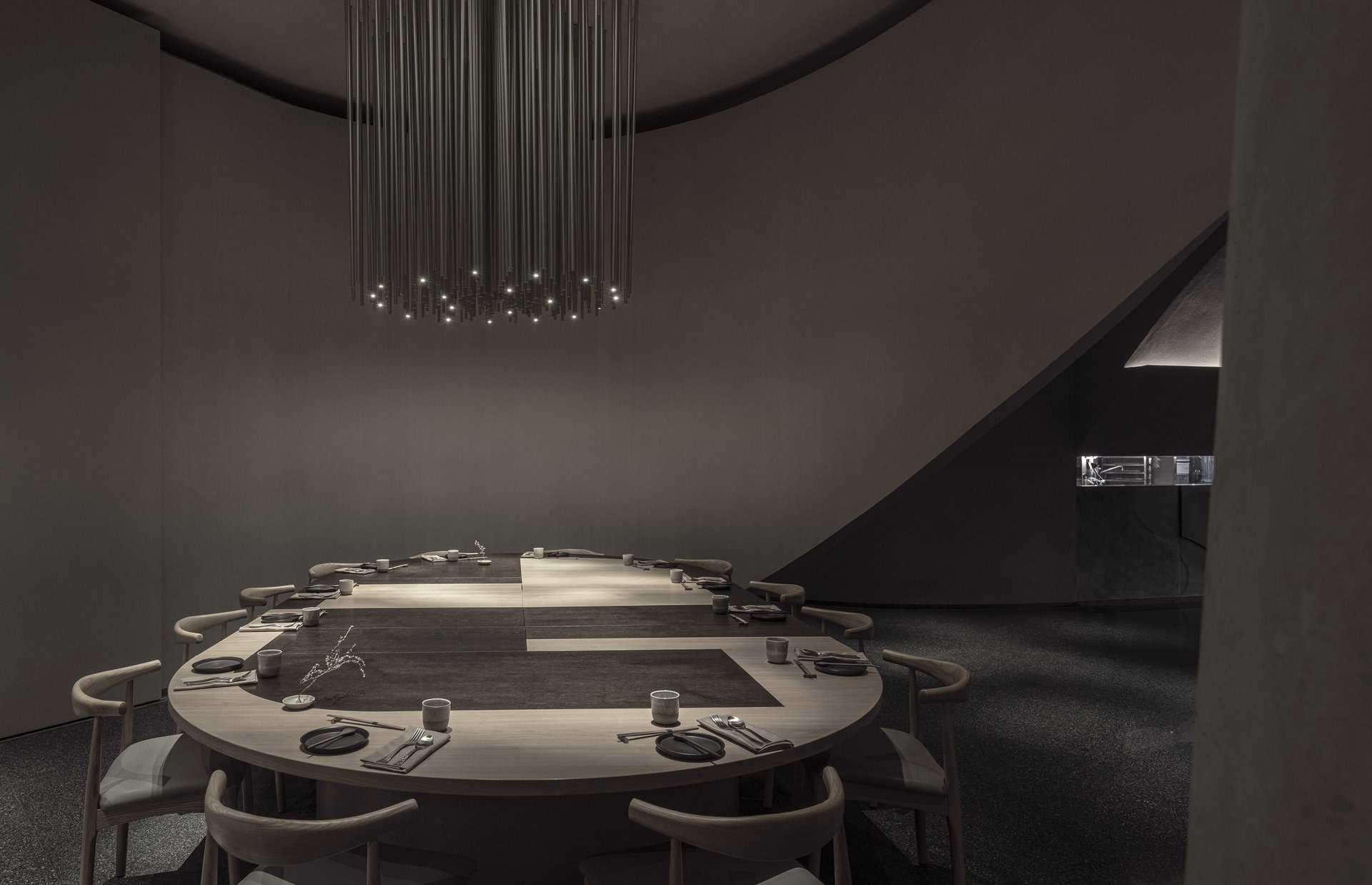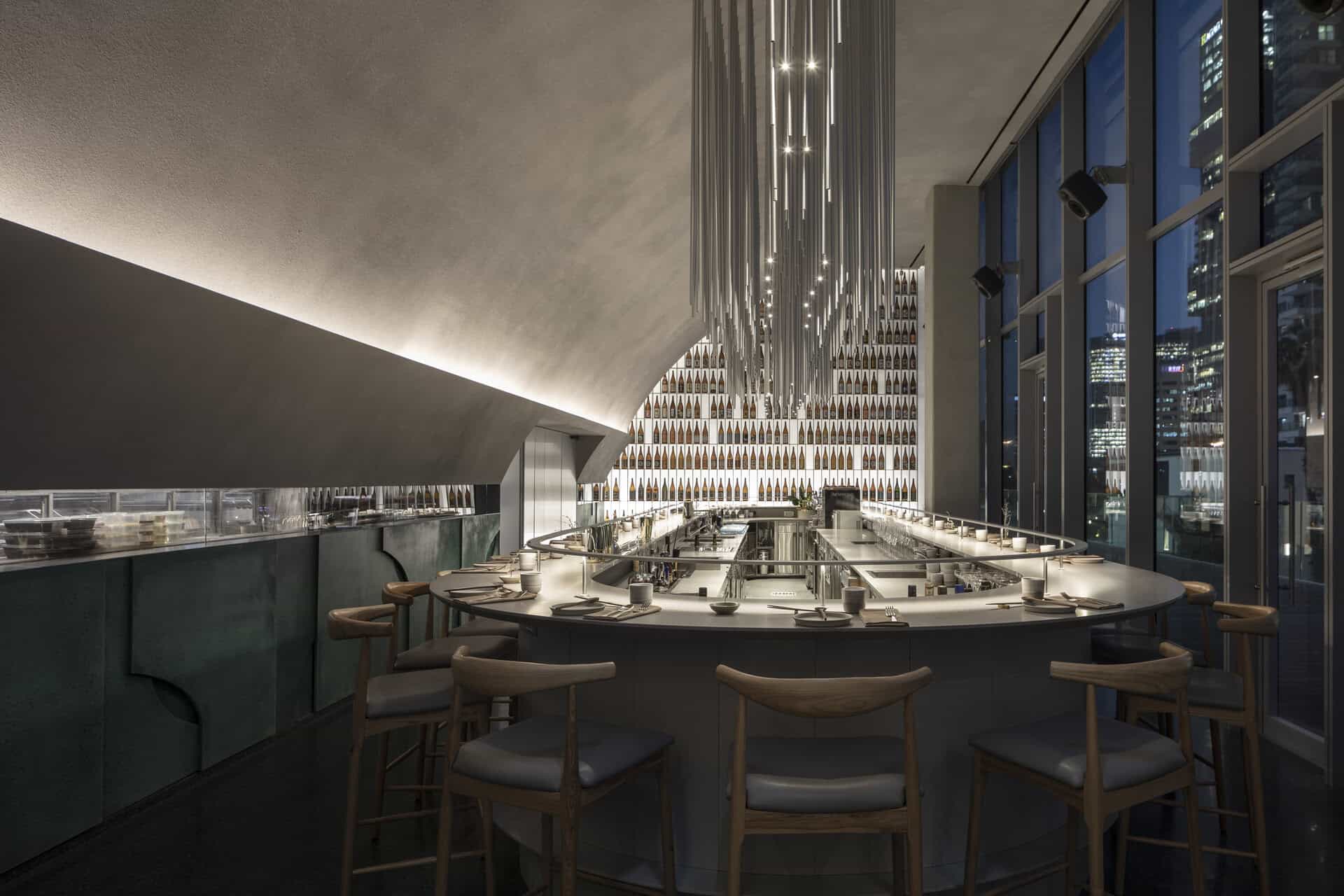The restaurant’s chef, Yuval Ben-Neriah, envisioned it as a culinary institute. It was destined to offer a place to experience rich, timeless knowledge well blended with the chef’s personal interpretation and daring culinary innovations. His idea to fuse Japanese and Western cultures into a slick lively elegance drove us to draw upon classic architectural idioms of form and matter in these two cultures, and re-sculpt them to create a calm yet assertive space and experience.
