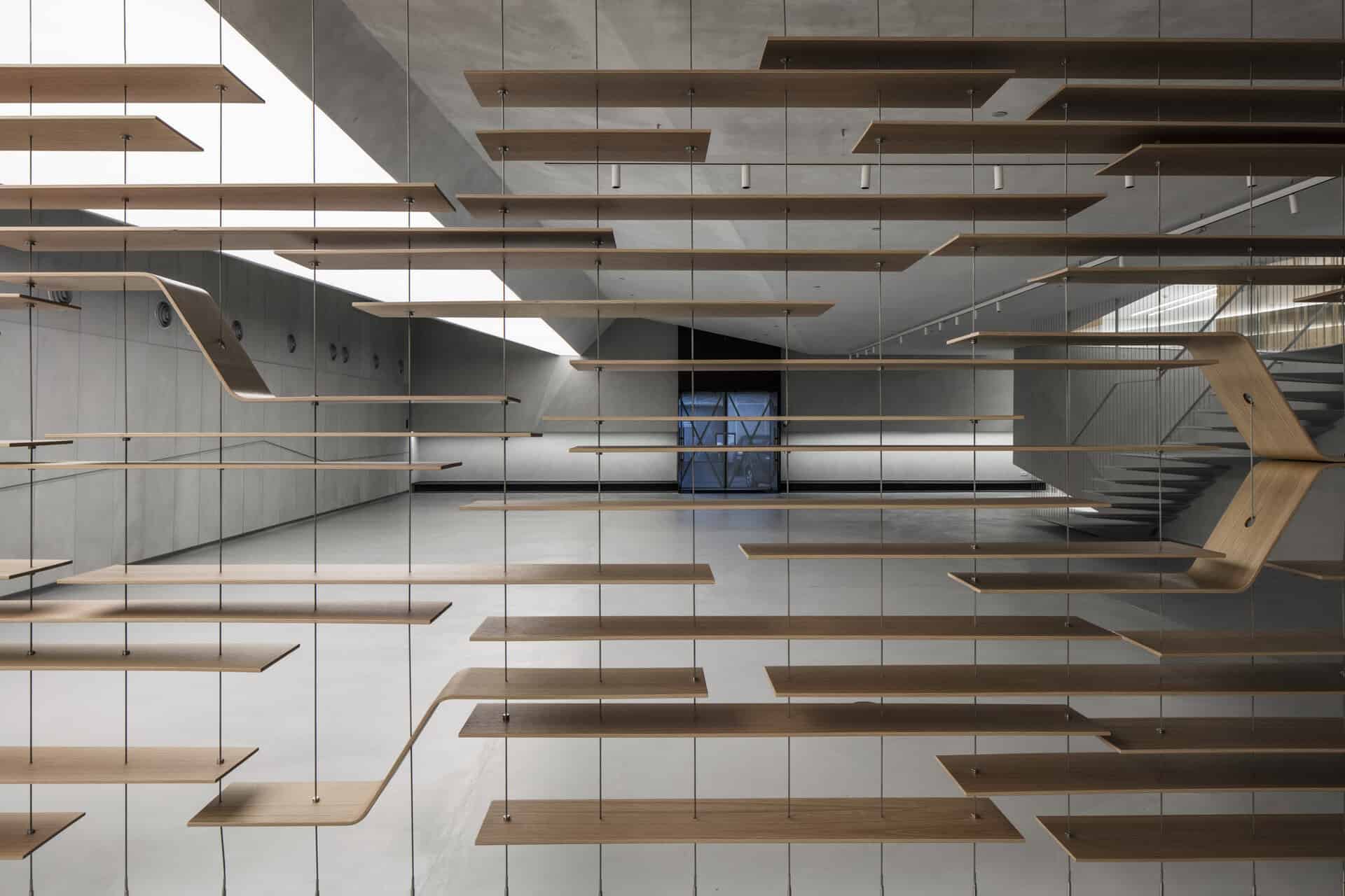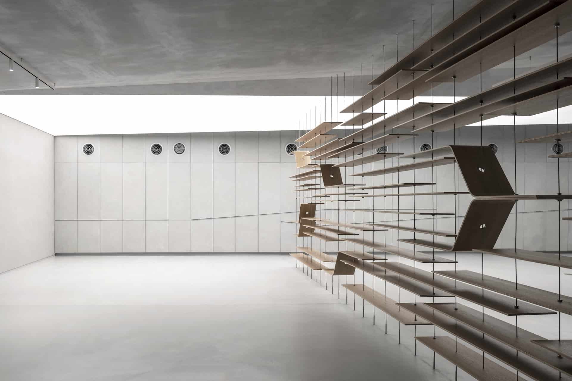 The challenge was two-fold. First  to detach it experientially  from its harsh industrial surrounding, as it is located in the heart of Hulon’s old industrial zone; and secondly to create a space with an assertive architectural presence while being elegant and enabling as a backdrop for the furniture is exhibits.