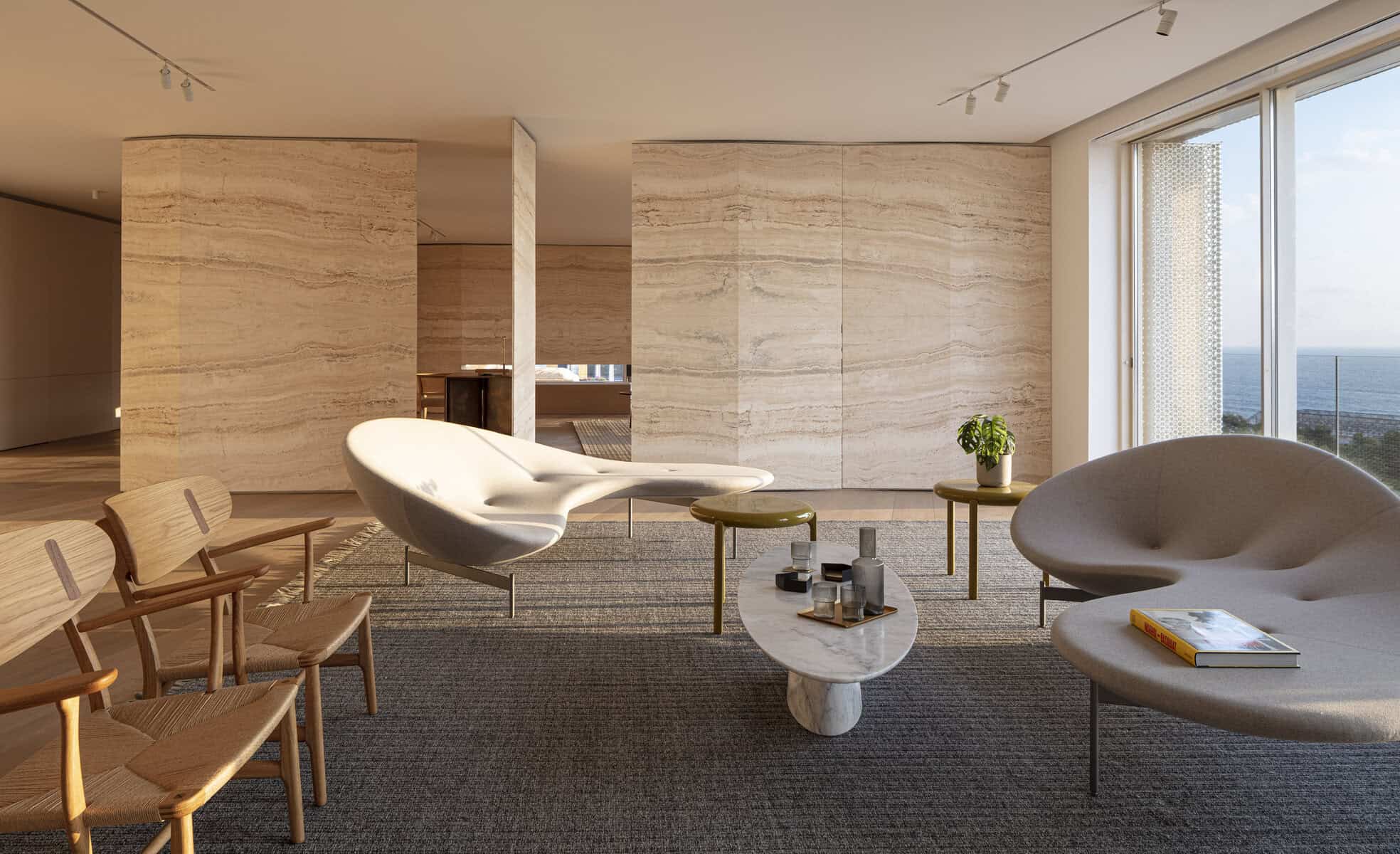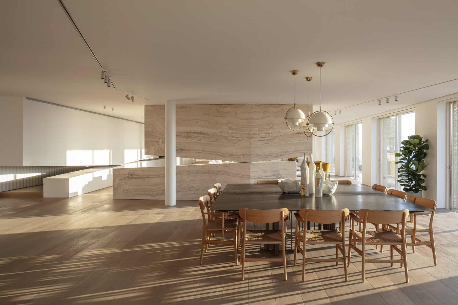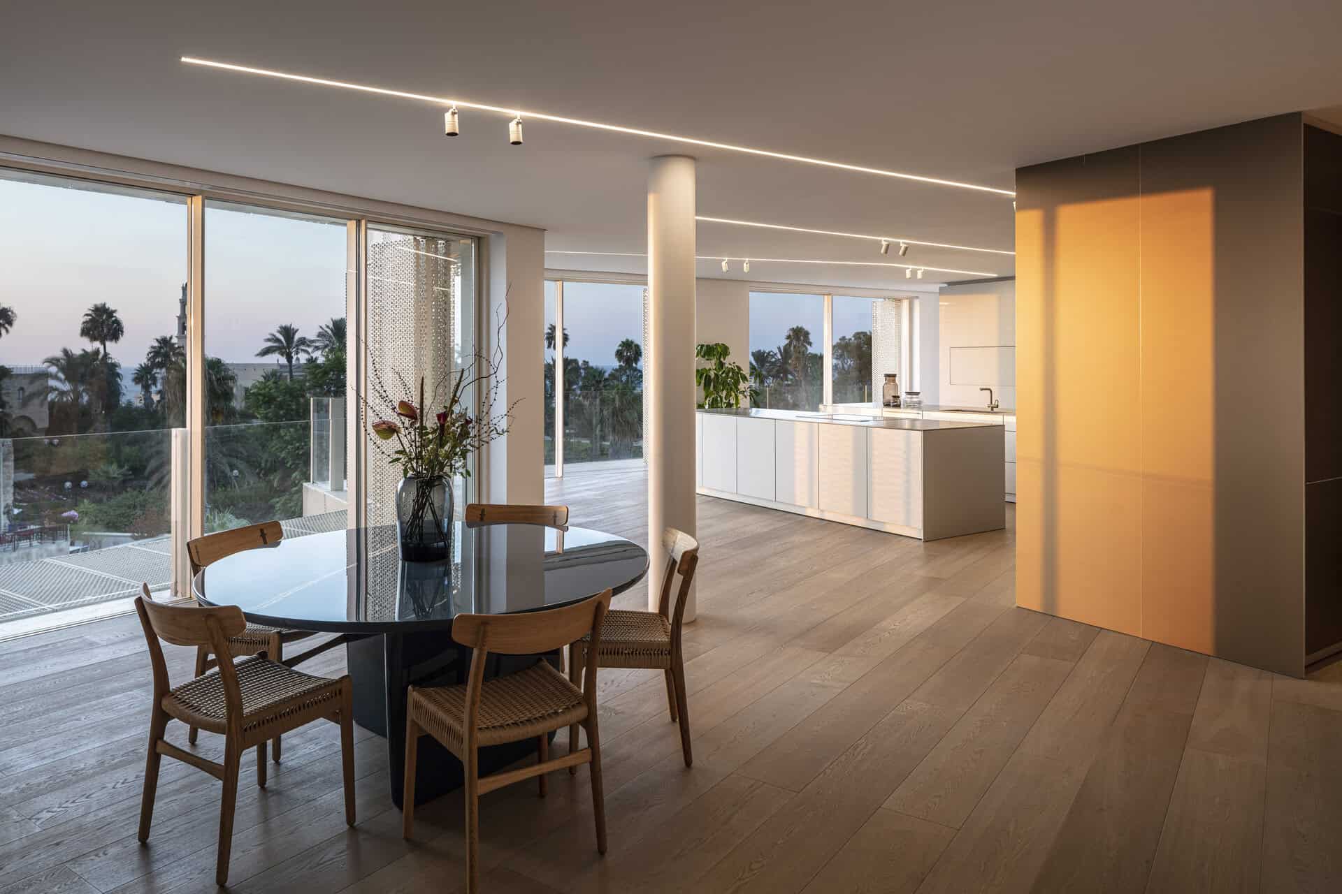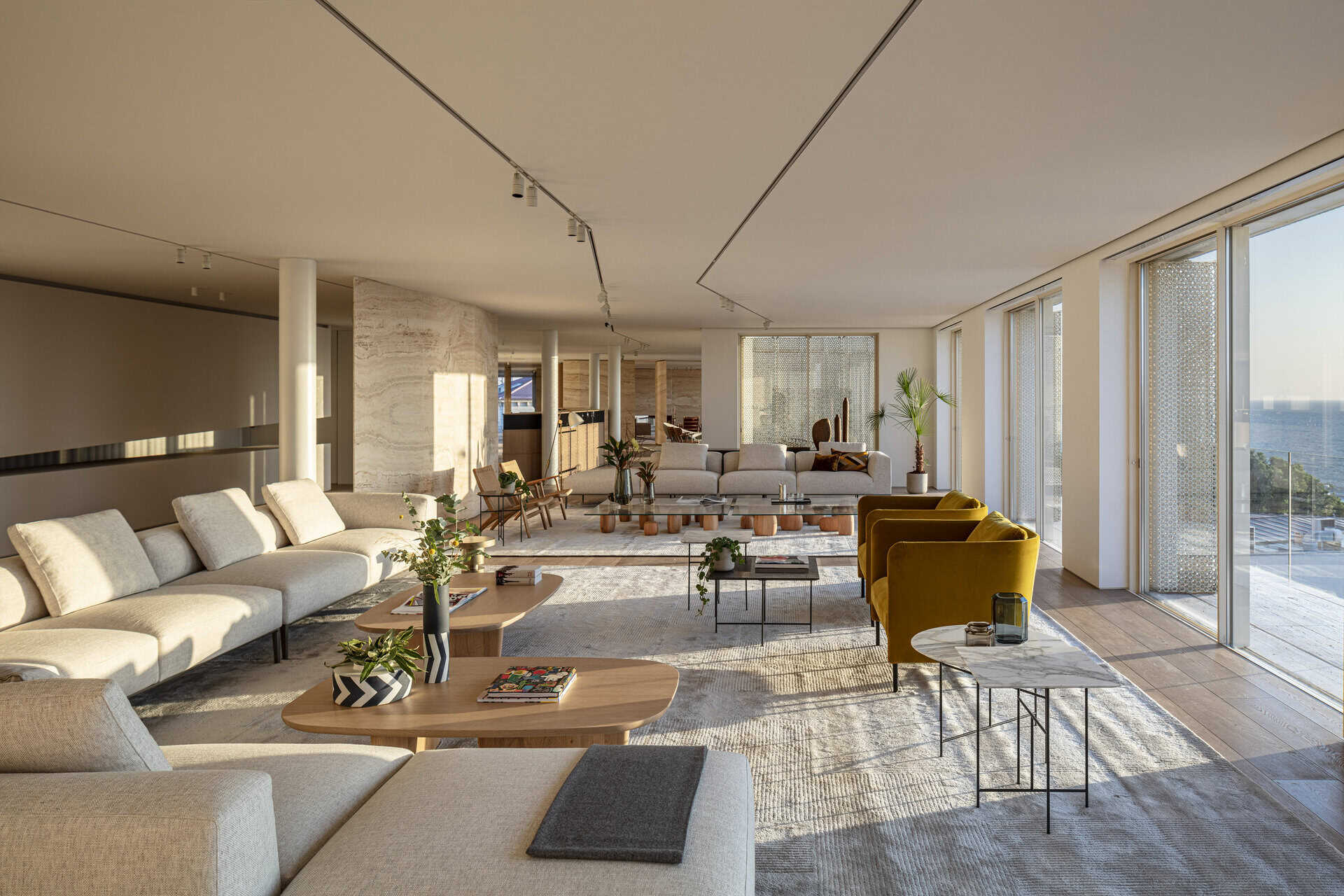 Modern lifestyle in a space that offers 360-degree panoramic views of the sea and the city calls for a spacious and open layout.