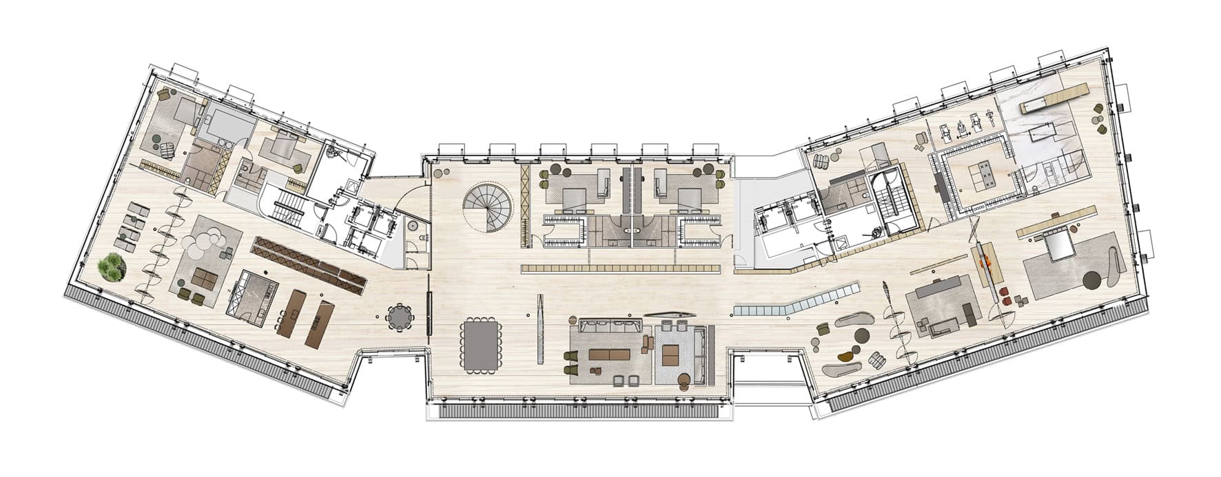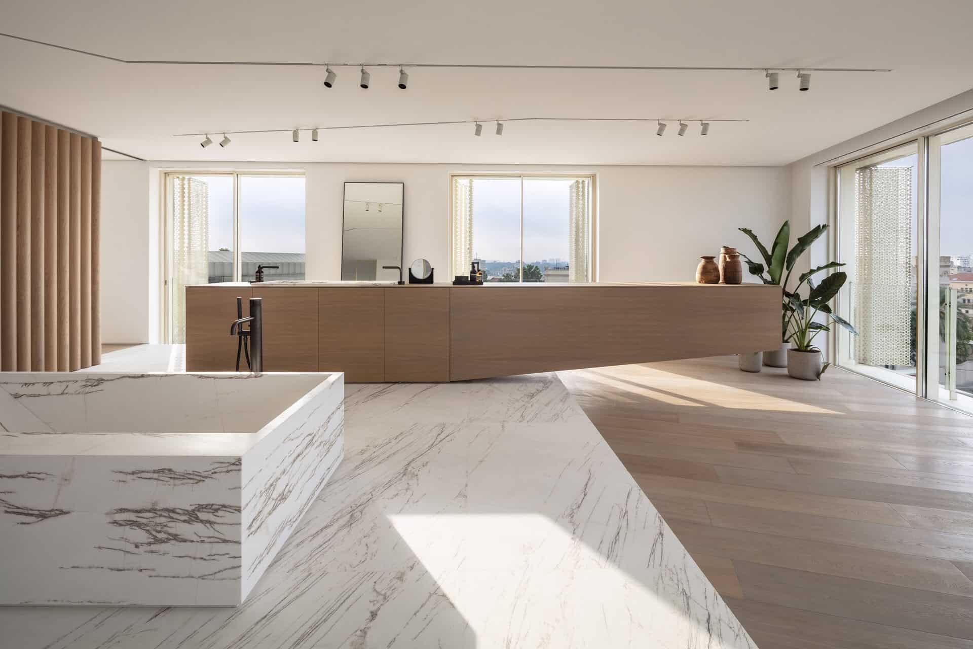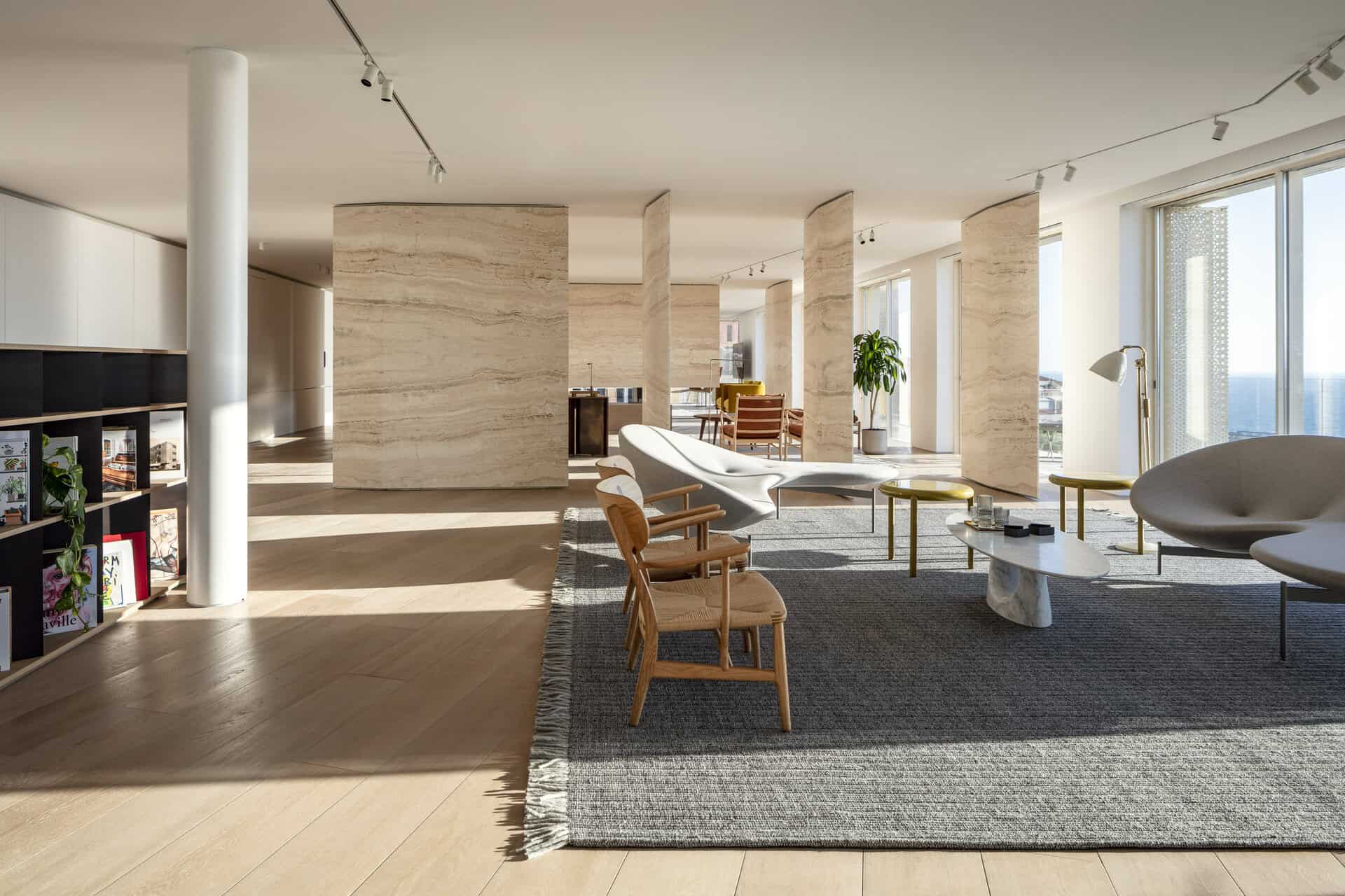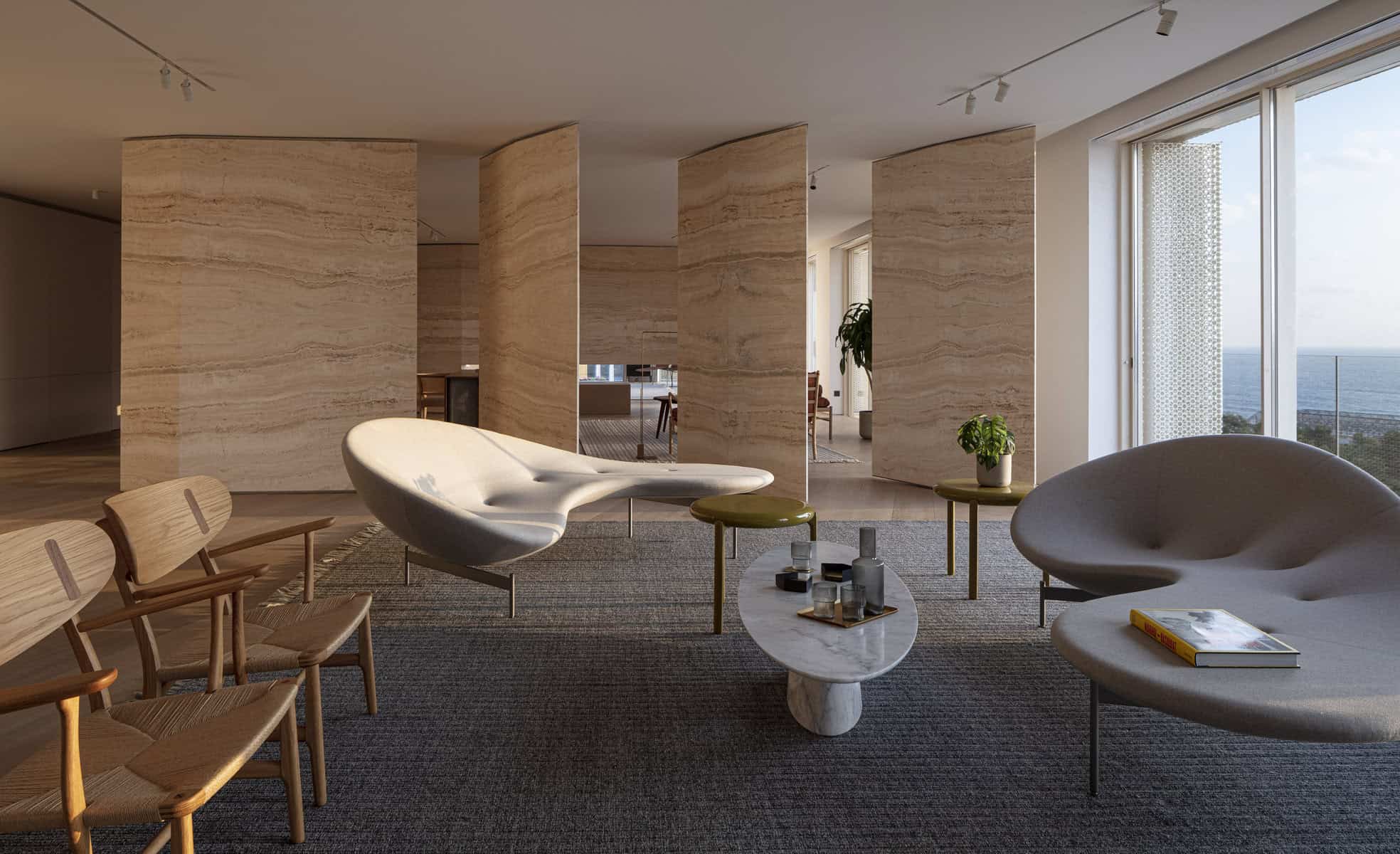 Modern lifestyle in a space that offers 360-degree panoramic views of the sea and the city calls for a spacious and open layout.