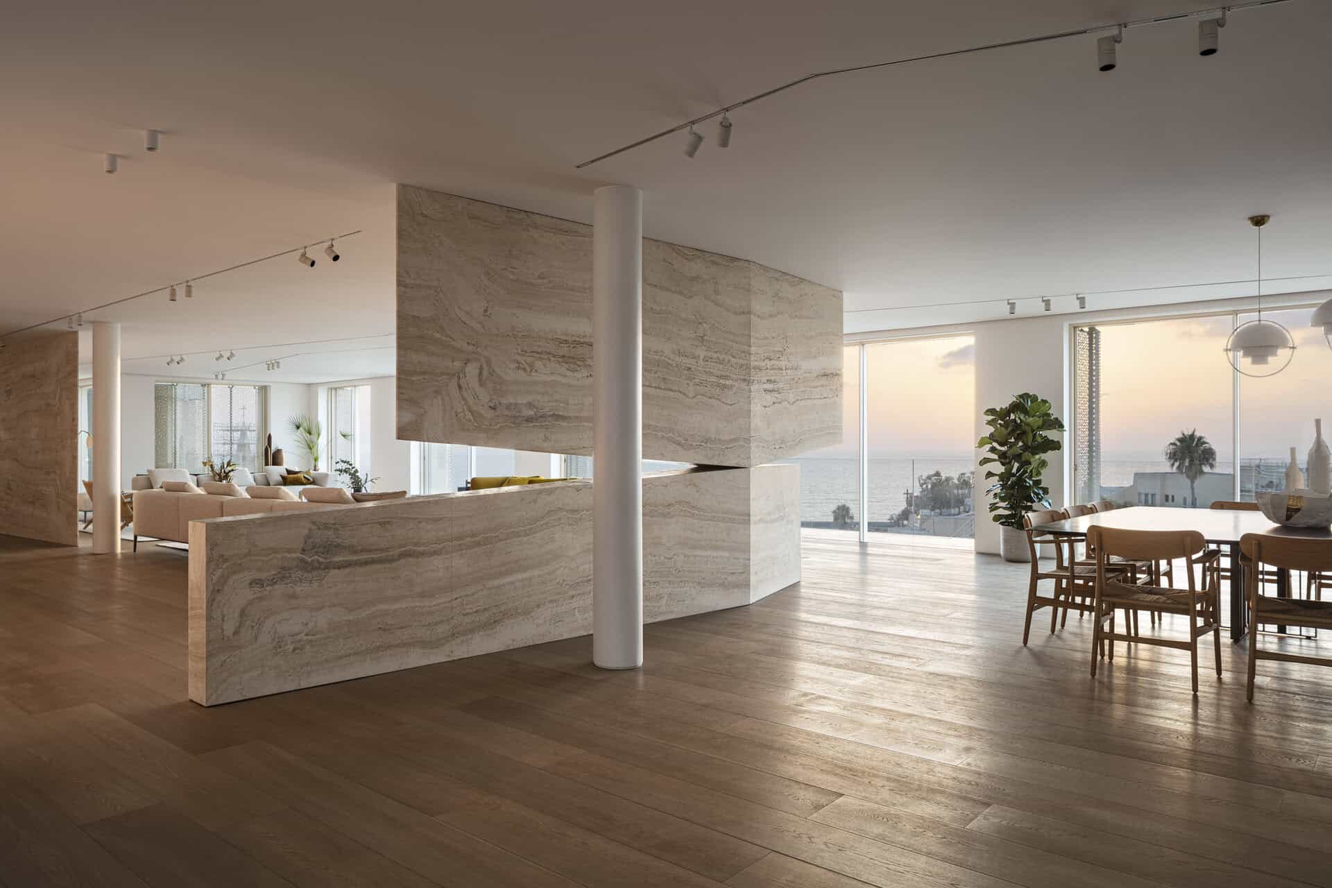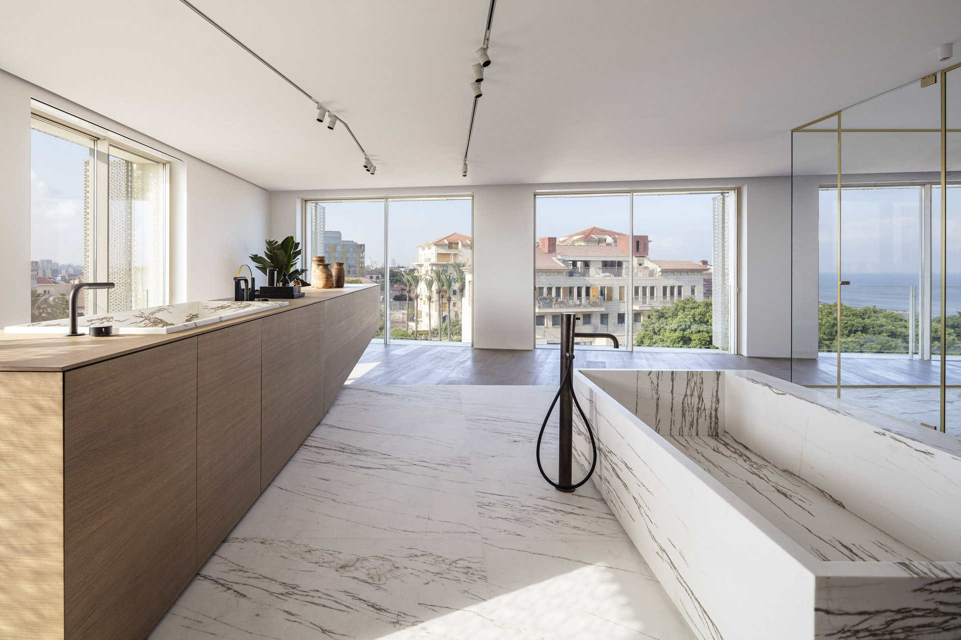 The Penthouse design draws inspiration from the stage it is set upon, the historic glory of Old Jaffa and the beautiful views of the sea and Tel Aviv’s skyline and its white city heritage.