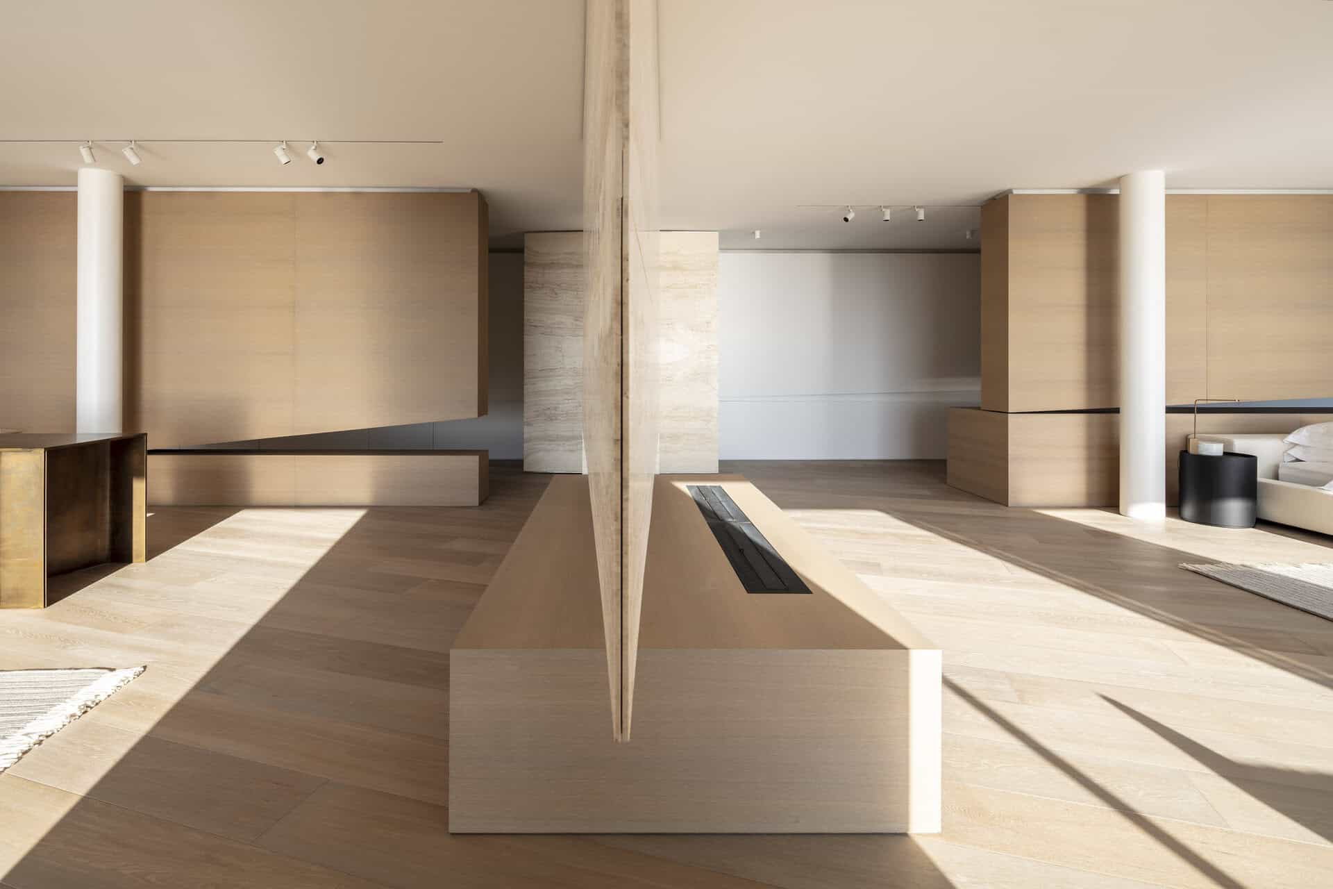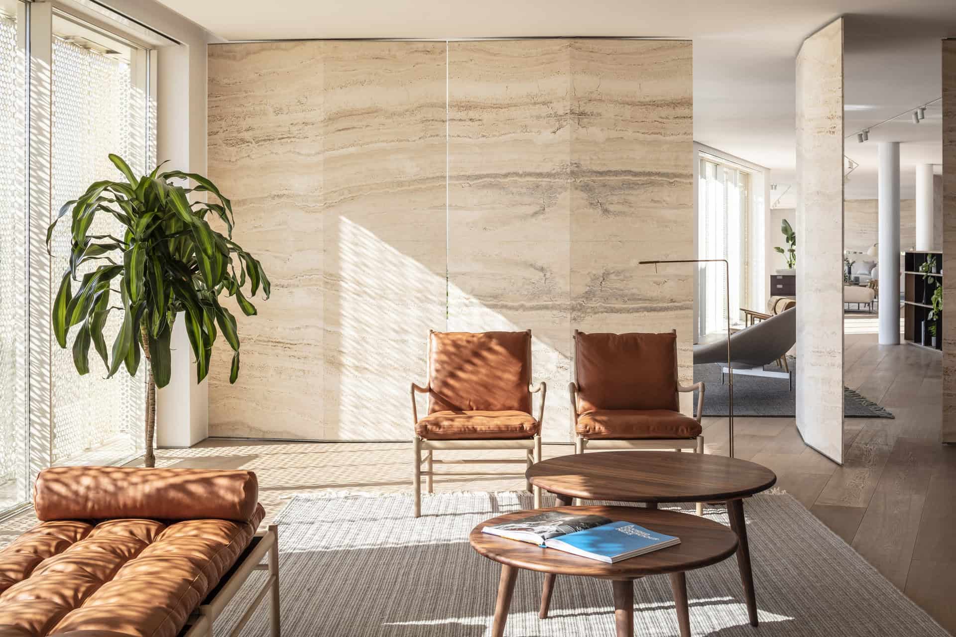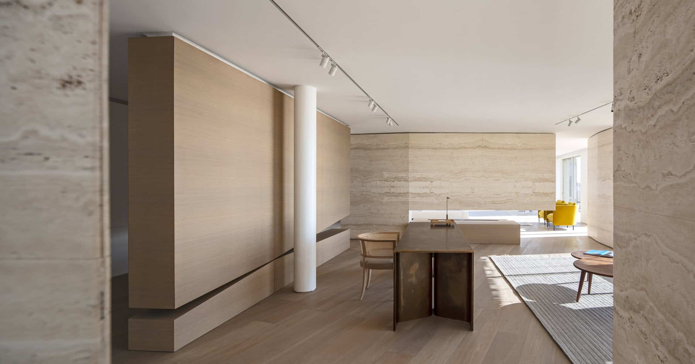 Bridging the old and the new is further accentuated through the selection of materials and finishes. Inspired by the warmth of Jaffa’s masonry structures, warm Mediterranean stones and marble were selected for the interior, combined with light wood floors to allow the brightness and beauty of the Israeli sun to flood the space graciously. These rich natural warm materials are complemented by rich fabrics and finishes.